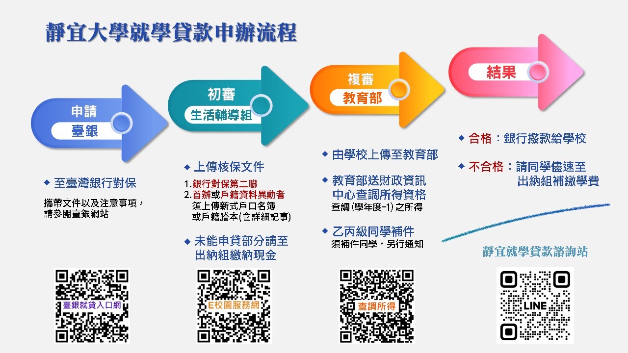 若有就貸問題,請洽靜宜大學生活輔導組就學貸款 諮詢電話(04)26328001轉11213/ytyang@pu.edu.tw